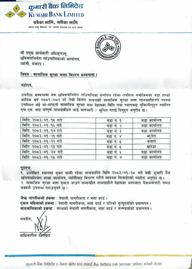 सामाजिक सुरक्षा भत्ता बितरण सम्वन्धमा।